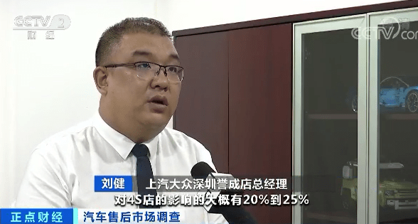 上汽大众深圳誉成店总经理 刘健:对4S店的影响大概有20%到25%,但主要是一些超过质保期就是超过原厂质保期的客户,可能会选择一些低价的保养去维护自己的车辆。