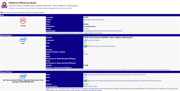 今天,我们在SiSoftware数据库里再一次见到了Tiger Lake处理器和Xe GPU核显,而且第一次确认了其产品名称:Intel Iris Xe Graphics。