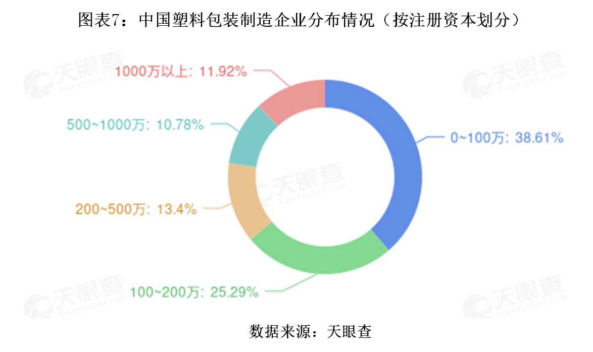 从嘉亨家化主营业务看,该公司分别属于塑料包装制造业、化妆品制造业。上述两类行业的市场竞争均十分激烈。据天眼查数据,截至2020年7月,我国塑料包装制造业企业数量多达4.56万家,其中以中小型企业居多(注册资本在0—100万元),占比为38.61%。注册资本在500万—1000万元的企业占比为22.7%。