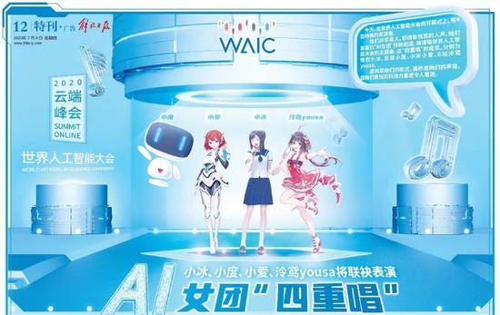 而就在同一天,B站旗下另一位Vup“泠鸢yousa”也参与到了“2020世界人工智能大会云端峰会”之中,和AI虚拟偶像微软小冰、百度小度、小米小爱同学一起,献唱全球首支人工智能MV《智能家园》。