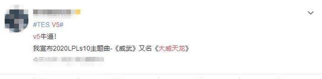 本场比赛结束之后,很多观众被V5的实力深深折服,他们纷纷在微博上留言表示对于V5的支持,更有搞怪的网友直接,S10的主题曲已经预定了,那便是《大威天龙》。