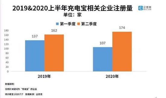 由于整个行业实现盈利,在美团之外,新的共享充电宝玩家又开始争相涌入,根据企查查数据,2020年1月至6月,我国充电宝相关企业注册量为 281家,其中第二季度注册量为174家,环比上涨62.6%。