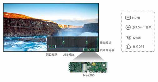 提供基于Android深度开发的会议系统卡Mee200,1080P@60Hz分辨率带载,轻量化设计,灵活装屏,开机即可用。