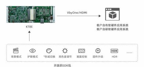 MeetUs核心控制卡KT8E,提供标准的VbyOne和HDMI接口,可实现与客户自有或自主开发的应用系统兼容对接,同时开放SDK包,助力客户打造定制化应用系统与交互能力。