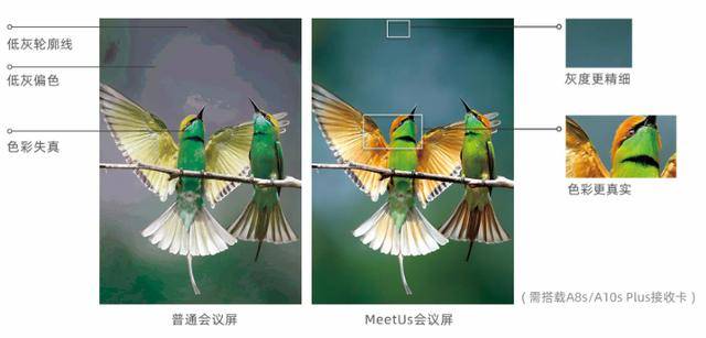 MeetUs基于独有的光学标定技术,助力工厂端大幅提升会议LED屏灰度与色彩表现,画面更加细腻真实,低亮度下细节淋漓尽显,让会议屏出厂即"丽质"。