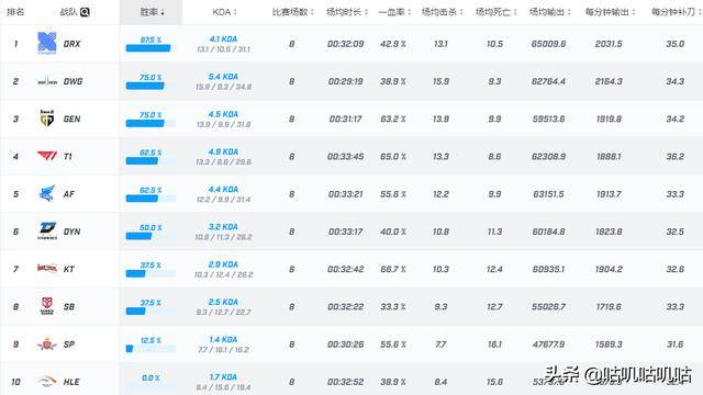 LCK赛区榜首的DRX战队排名第4,他们目前的战绩为七胜一负高居赛区第一,积分第二的DWG则是位列第7位,T1目前排在第14位。评论员认为DRX这支队伍拥有很大的变数,上路多兰一直摇摆不定,但是打野看上去与队伍更加协调,如果他们想要战胜GEN和T1这种后期发力的队伍,就需要做到更好。