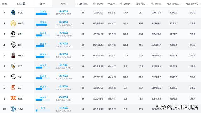 欧洲LEC赛区的MAD战队排在第3,MAD和RGE的战绩同为七胜二负并列第一,RGE目前在第6,MAD上一周的比赛奋起直追战绩也追平了之前榜首的RGE,本周他们还将和强队G2交手。