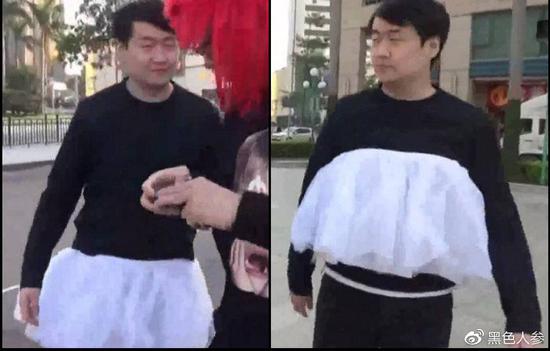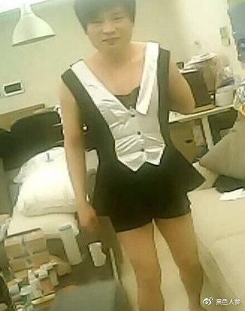 穿着穿着裙子就变成了抹胸,配合上面无表情眯着眼,仿佛不是女装而是行为艺术。