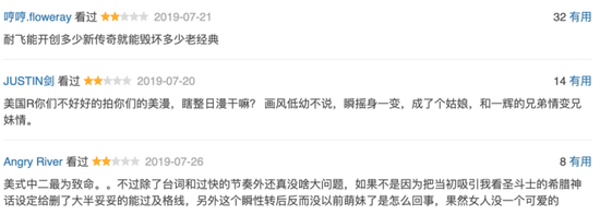 当然,经典IP重启要得到好评,并不是那么简单。《哥斯拉:怪兽行星》IMDb6.0分以及豆瓣6.2分都说明这部电影只不过刚过及格线。《圣斗士星矢》更是跌破眼镜地得到了IMDb4.5分的反馈,水土不服的Netflix背上了毁经典的骂名。