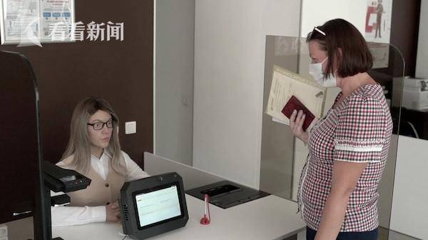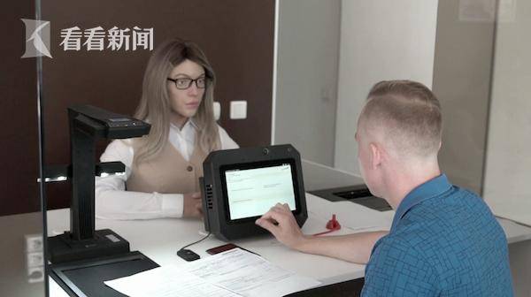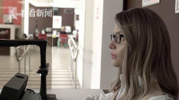 这位新员工留着金色长发,戴着眼镜,坐在柜台前,看起来就像一位普通的俄罗斯女性。可她的眼睛却一眨也不眨,这让来访的市民们大惑不解。
