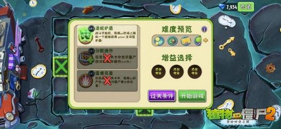 每个关卡包含三个难度级别,以火爆辣椒的个数标识,分别对应一阶、三阶、六阶的僵尸强度。此外,随着难度的提升,关卡内将会融入额外的条件限制,阳光产出的削减、卡槽数量的减少等,都将给玩家带来更多“小麻烦”。模式内融入了“电池”的概念,每一次挑战都将会消耗电池数量,当电池不足时,潘妮进入待机状态,玩家将无法继续挑战。