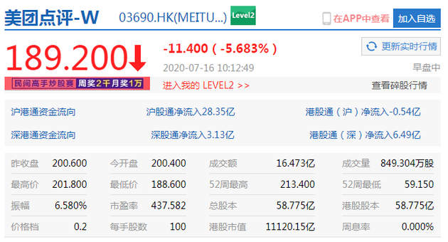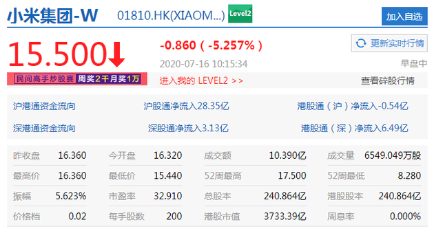 7月16日下午消息,美团点评、小米集团跌幅均扩大至5%,截至发稿,美团点评跌5.68%报189.200港元,港股市值11120.15亿港元;小米集团跌5.25%报15.50港元,港股市值3733.39亿港元。