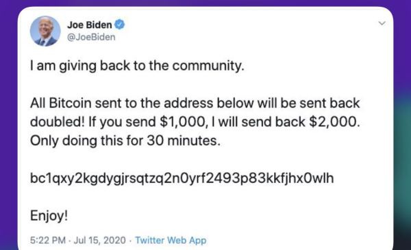 福克斯新闻网报道称,当地时间15日,从前副总统拜登到现任大公司负责人,在推特上人气颇高的多个著名账号均遭到黑客攻击,发布了募集比特币捐款的推文。福克斯新闻网报道称,15日有人在推特上发布推文称,“我在回馈社区。所有寄往以下地址的比特币将加倍退回!如果你寄1000美元,我就回寄2000美元。只做30分钟。随后,这些推文附上比特币钱包的相关代码。”