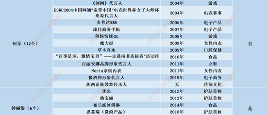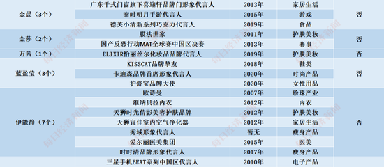 图片来源:启信宝23位姐姐累计代言超160个