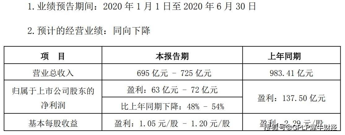 7月15日,格力电器发布2020年半年度业绩预告称,预计营收为695亿-725亿元,2019年同期为983.41亿元,同比下降26%-29%;预计净利润为63亿-72亿元,同比下降48%-54%;预计基本每股收益1.05元/股-1.20元/股,2019年同期为2.29元/股。