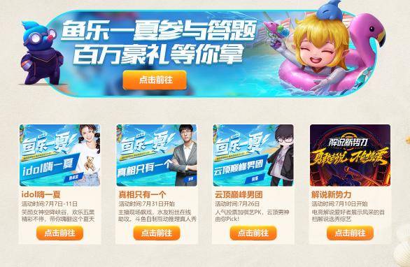 鱼乐一夏活动将陪伴大家度过快乐暑期,除了全明星狂欢周的精彩对抗赛,还有海量大奖等大家赢取。千万不要错过哦~游戏网