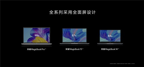 为了提升视觉体验,荣耀MagicBook 14锐龙版在13英寸机身内装入一块14英寸全高清屏幕,实现小机身大视野;荣耀MagicBook 15锐龙版同样承袭家族式全面屏设计,上左右三面窄边框约5.3mm,屏占比高达87%,带来“无界”全屏视觉体验;全系支持低蓝光和无频闪的双重莱茵护眼认证,保护视力的同时,带来高清体验。