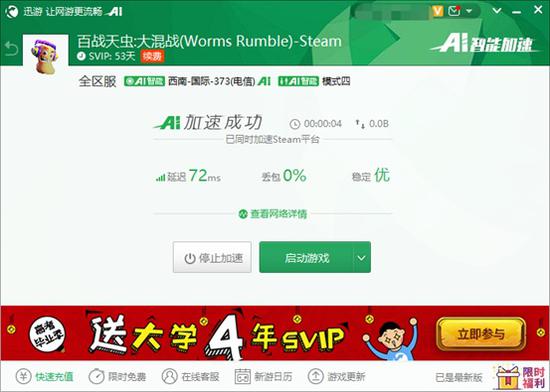 本次游戏内容公布后,许多玩家表示青春回来了,已经获得测试资格的玩家可以进行游戏的下载试玩。迅游加速器为了各位玩家能够流畅联机对战,畅快回忆自己的青春,已经抢先支持《百战天虫:大混战》联机加速,助力玩家稳定联机。