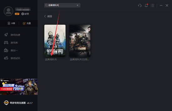 用奇游加速器加速“逃离塔科夫”分区即可实现下载提速,支持免费试用,欢迎各位用奇游完成新版本更新: