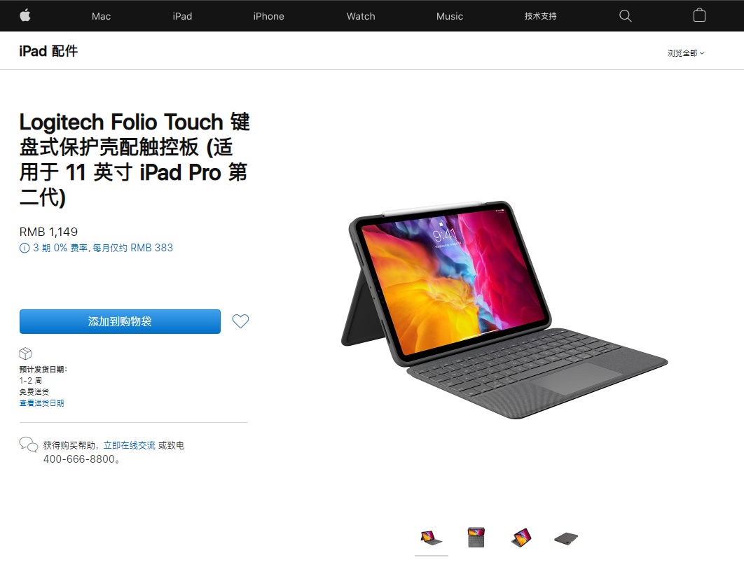 罗技的 Folio Touch 苹果官网售价为 1149 元。
