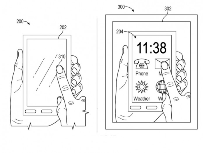 苹果公司的专利申请取消了在iPad或iPhone上放置屏幕的做法,而是利用AR和 “苹果眼镜”。虽然在申请中描述了不同的方法,但最主要的是一种使信息在眼镜上呈现的方法。苹果在专利当中表示,如果你戴着 “苹果眼镜”,你看着你的iPad屏幕,AR会让你觉得该设备上有一个正常的显示屏。对于周围的人甚至你身后的人来说,iPad可以看起来完全是一片空白。这个系统除了被动地显示信息阅读外,AR系统还会让人觉得控制在iPad屏幕上。然后,iPad可以记录用户对这些控件的点击。其结果是,在周围的人看来,你好像是在随机点击一个空白的屏幕。但对你来说,这就像你在使用普通的iPad或iPhone一样。