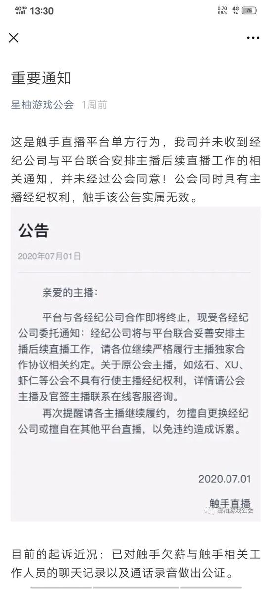 其次,触手直播原管理层及部分团队疑似要成立新的公会,企图带着主播转战快手。在未与公会协商的情况下,宣布公会无经纪权力。