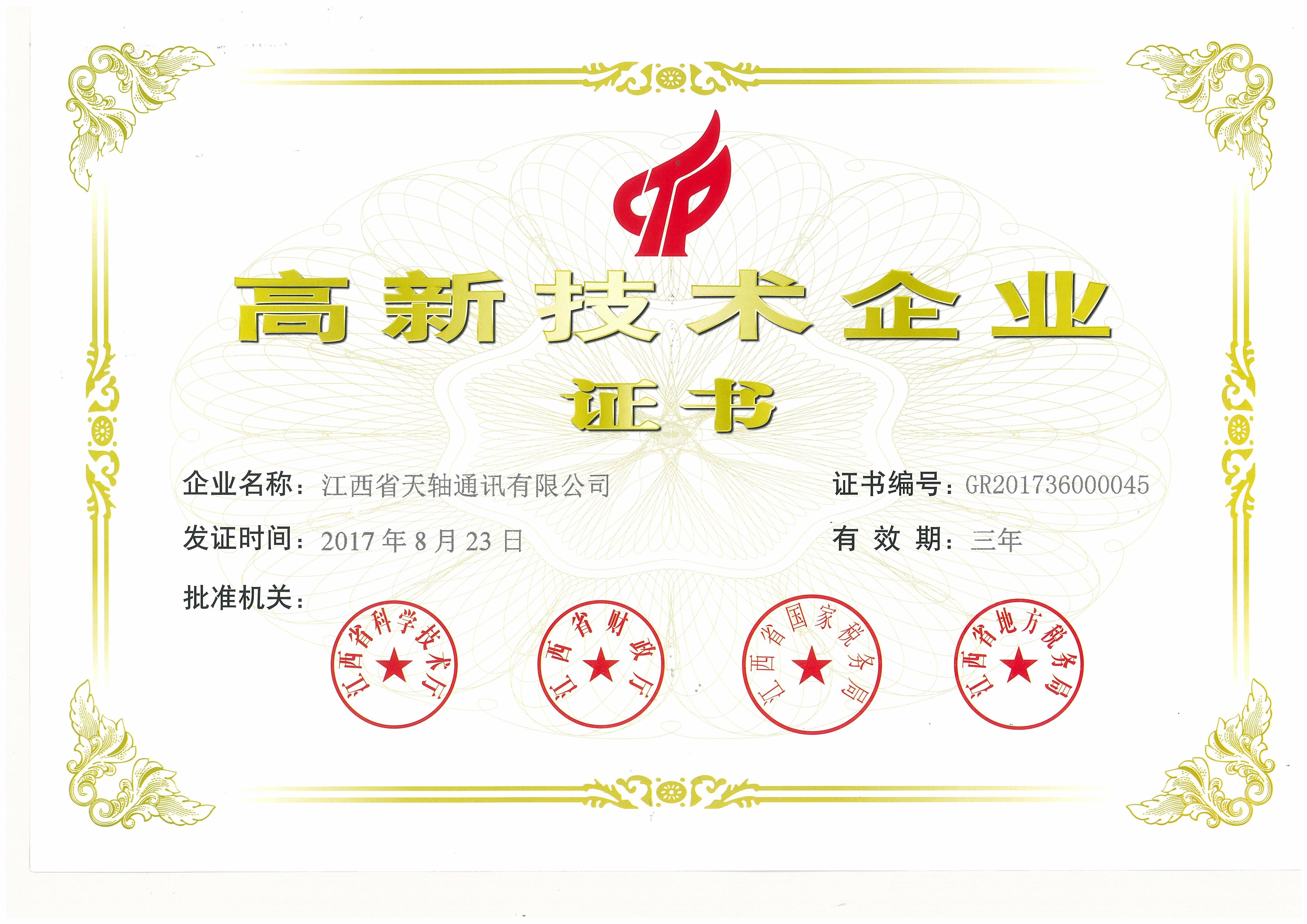 天轴科技作为国家级“高新技术企业”、“双软企业”,拥有涉密信息系统集成资质,ITSS运维资质等多项资质。公司知识产权体系完善,已通过知识产权管理体系贯标认证,拥有多项国家发明专利和计算机软件著作权,先后获得包含“诚信经营示范单位”、“重合同守信用企业”、“质量服务诚信单位”在内的多项荣誉。公司在产品创新与项目管理方面实力雄厚,多次获得省级“优良工程”、“人工智能创新奖”等奖项。