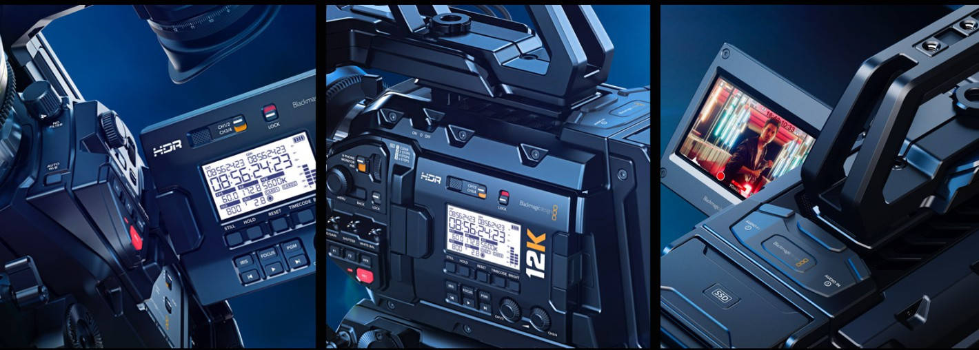 URSA Mini Pro 12K,对比前代的4K和4.6K,像素大幅提升,而且有全新Blackmagic第五代色彩科学以及更高Blackmagic RAW性能。其使用PL镜头卡口(可选配EF和F卡口)、双CFast(传输速度高达900MB/s)和UHS-II SD卡录机、SuperSpeed USB-C接口(可直接外录到硬盘)并内置ND滤镜。