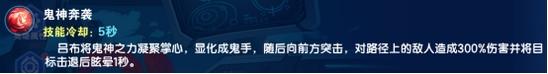 吕布最为擅长困兽之斗,巧妙的利用鬼神奔袭将敌人聚集起来,在用鬼神斩创造地形进行决斗,快速触发血战及鬼神戟的吕布将所向披靡。