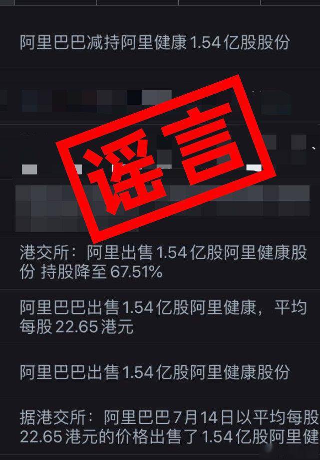 原标题:阿里巴巴减持阿里健康1.54亿股股份?阿里健康:谣言