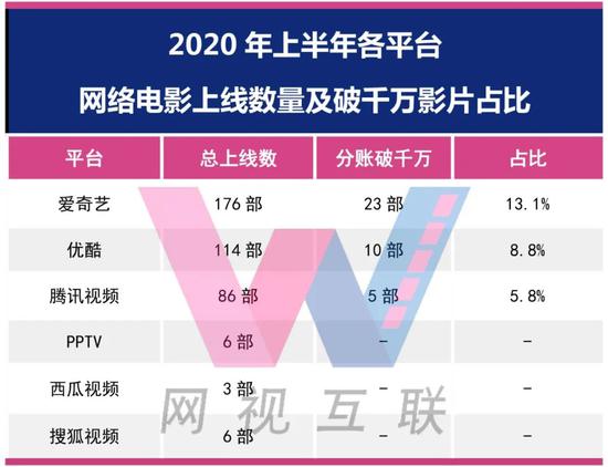 而且继优酷之后,2020上半年爱奇艺和腾讯视频也实现了网络电影的月度结算。也就是说,本月上线影片,次月即可申请结算。