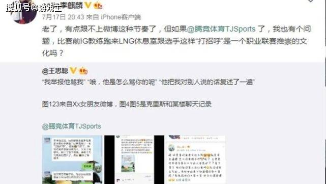 很快,LNG的老板在知道王思聪下场对线后,也马上发了一条微博表达他的看法。我们可以看到,他首先是觉得自己老了跟不上微博的节奏,之后他觉得这件事的核心不是其他的,而是比赛前IG教练跑到LNG的休息室并不好。其实明白人都知道,李麒麟这是在避重就轻,试图让LPL官方加重对克里斯的处罚。