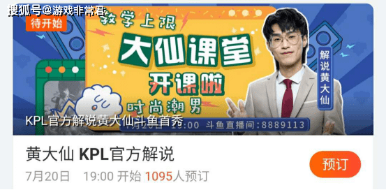 相信有不少小伙伴们都看过王者荣耀的职业联赛吧,在王者荣耀的职业联赛里,我们一开始记住的就是职业选手,然后就是官方的解说们,而最近就有一位最新入驻的解说,他就是黄大仙。同时在7月20号,黄大仙也即将正式入驻斗鱼直播,可以说,斗鱼又迎来了一位顶级流量的主播以及职业选手。