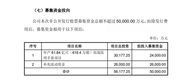 英科医疗公告显示,此次定增募集资金不超过5亿元,目的主要是满足高端医用手套市场激增的需要。定增募集资金将有利于缓解因新冠肺炎疫情带来的快速增长的一次性手套市场需求,同时也将促进公司的业务增长,进一步优化公司产能布局和巩固公司在行业内的领先地位。