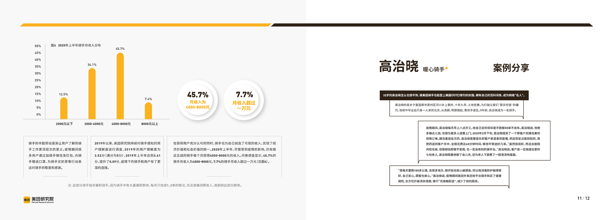 编后语:关于《美团:2020上半年骑手就业报告 半数骑手收入4000元以上》关于知识就介绍到这里,希望本站内容能让您有所收获,如有疑问可跟帖留言,值班小编第一时间回复。 下一篇内容是有关《多家车企积极投身“新能源汽车下乡”》,感兴趣的同学可以点击进去看看。