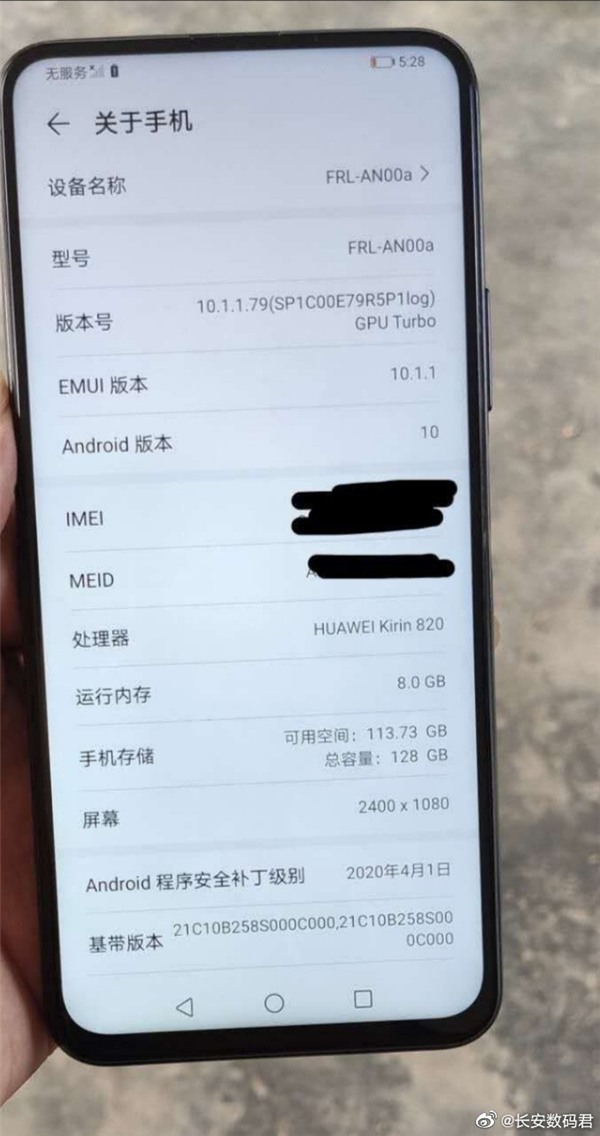 值得一提的是,此前知名数码博主@长安数码君曾曝光过型号为“FRL-AN00a”,称是华为新机麦芒9的工程机图,表示该机将于7月26日与华为畅享20一起亮相发布。
