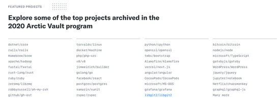 在 GitHub 列出的被封存开源代码清单中,你会发现大量当今计算世界及网络世界的基石 .Net、ruby、apache、docker、php…... 涵盖了操作系统、数据库、金融区块链、音视频、前后端等等几乎所有的程序智慧。