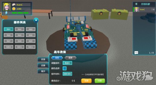 游戏中另一个有意思的玩法就是—战车改装,游戏中为玩家可以自由搭配颜色和选择图章,多达上万种组合搭配,让玩家可以定制出属于自己的心爱战车!后续创作者还会增加新武器和武器位的改装玩法,一起期待吧!