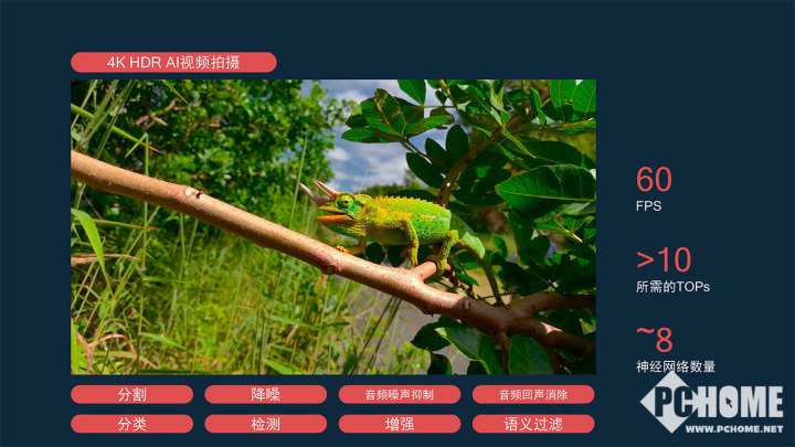 对于5G时代,视频的分享方式会逐渐成为主流,而视频的画质优化,音频与视频画面的同步处理,需要比静态照片更强大的算力支持。在每秒60帧拍摄能力上需要运行超过8个神经网络,性能要求提高到了每秒10万亿次运算以上。高通骁龙865移动平台就完全能够满足4K HDR视频的AI算力需求。