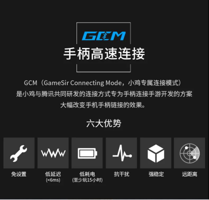 由小鸡与腾讯共同研发的GCM,可以让小鸡手柄更加简朴地完成连接,同时也能够大幅度优化手机与手柄之间的连接效果,低延迟,更不乱。