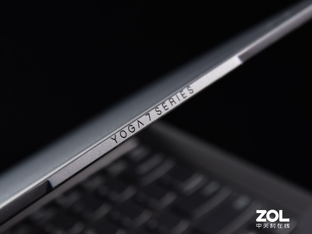 在屏幕侧顶部边框中央,刻着“YOGA 7 SERIES”的字样。联想YOGA 14s其实是YOGA S740的继任者,也就是YOGA轻薄系列(Slim)。YOGA有两大系列,其中以C开头(Convertible)的是二合一翻转本,比如YOGA C940、C740;以S开头(Slim)的是轻薄产品,比如YOGA S940、YOGA S740。为了方便大家辨别,联想将代表轻薄的“Slim”的首字母变成了小写,放在了尺寸后面,联想YOGA 14s的命名就是这么来的。YOGA是联想轻薄本中的高端产品,质感更出色,5499元的售价真是难能可贵。