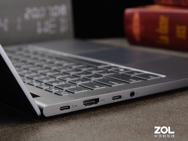 联想YOGA 14s的接口实用性非常好,其有两个Type-C,其中一个为充电口,而且支持数据传输,另外一个为全功能Type-C,两个Type-C均位于左侧,同时左侧还有HDMI 2.0b和3.5mm耳机麦克风二合一接口。开机键位于机身右侧,同时还有两个USB 3.2 Gen 1,其中一个支持关机充电,旁边还有一个MicroSD读卡槽,值得点赞。
