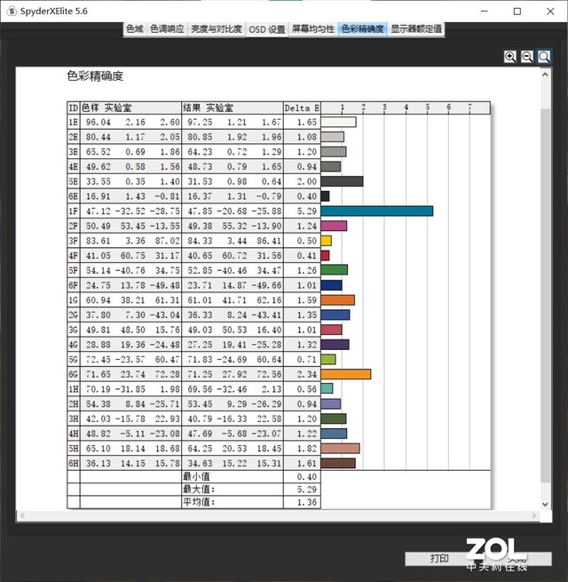 我使用Spyder X对这块屏幕进行了测试,得到色域覆盖98% sRGB、73% AdobeRGB、75% P3、68% NTSC,最高亮度309cd/m2,平均ΔE=1.3(色准)。从色域、亮度、色准三项数据来看,联想YOGA 14s屏幕的综合素质值得肯定。