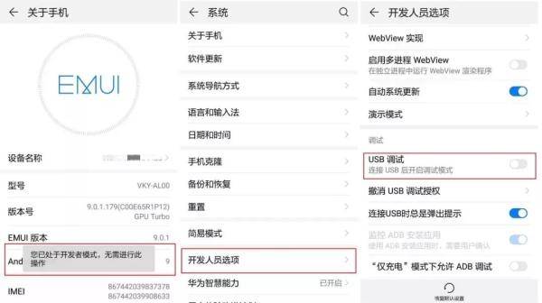 大多数安卓手机都有USB调试功能,这相当于给手机开放了一个接口,很多刷机达人能够利用这个接口体验到更多的功能。不过,开启了USB调试功能,意味着手机自身的“保护性”便相对差了一些,存在着隐蔽的风险,手机绑定的账号信息等很容易被各种应用随意调用。