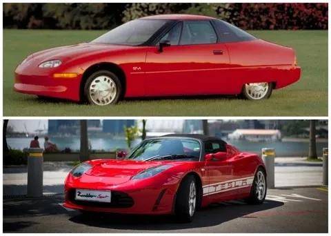 更有人把通用汽车的EV1与特斯拉Roadster摆放在一起,这种传承的意味就更浓厚了。