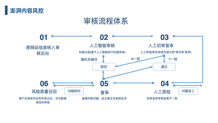 如今,澎湃新闻拥有成熟的风控体系,拥有由资深新闻媒体从业人员搭建的核心团队、经验丰富的支持团队、顶尖行业专家资源、7*24小时平台风控管理、动态敏感词库和更新机制,以及具备自主研发和完善审核平台实力的创新技术团队。