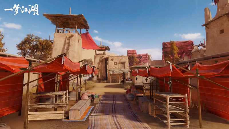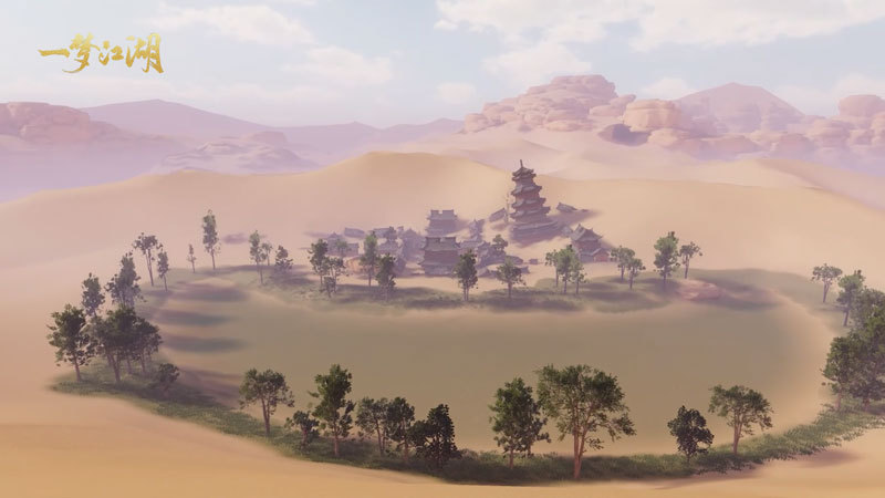 跟着《一梦江湖》年度材料材料片“惊蜃影”的邻近,广宽的西域舆图也揭开了神奇面纱。古朴繁华的玉门镇,断壁残垣的楼兰遗迹,千年没有涸的新月湾……神奇的年夜漠景色行将展示正在咱们眼前。全新的西域之旅行将开启,让咱们踏上西行之路,独特享用这段共同的旅途吧。