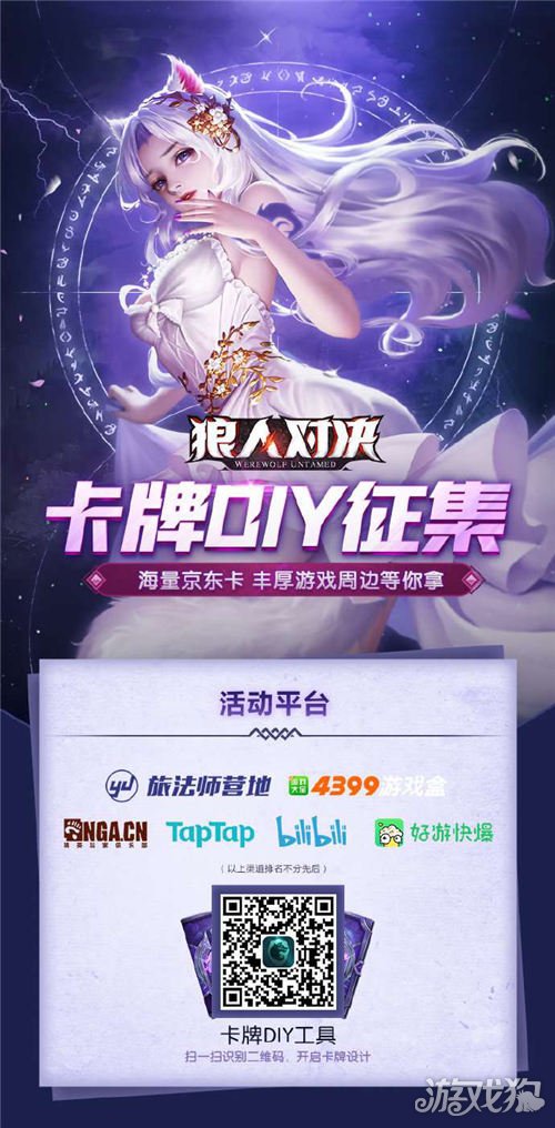 此次卡牌DIY活动全平台开展,大家可以前往TapTap、哔哩哔哩、旅法师营地 、NGA玩家社区、好游快爆、4399游戏盒等“狼人对决”专区参与活动,足够优秀的DIY作品还有机会在《狼人对决》游戏中出现并署名。