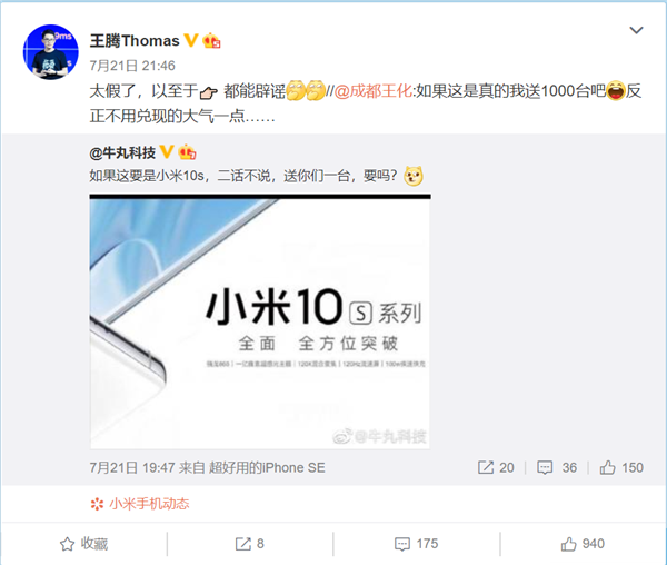 对此Redmi产品总监王腾辟谣,表示太假了。