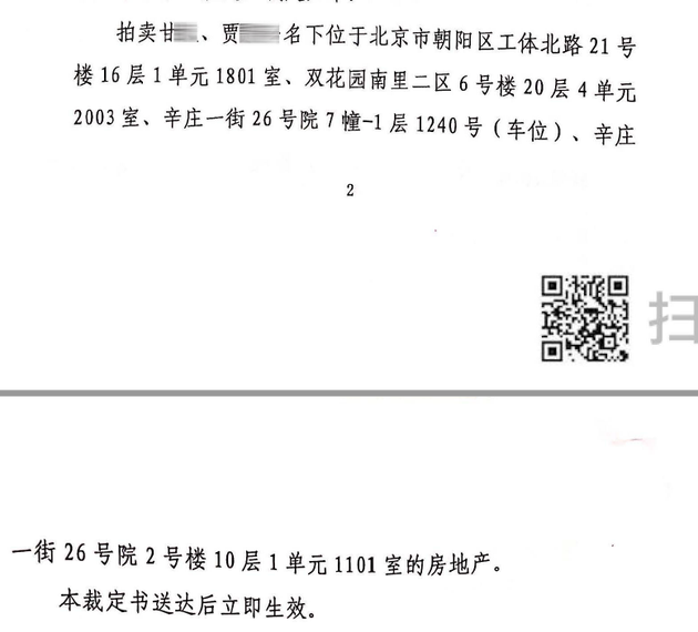 不外,依据法院的执行裁定书,贾跃亭与甘薇正在北京至多有3处房产。除了了泛海国内这套房产,贾跃亭、甘薇位于向阳区工体北路、双花圃南里的房产均被查封,并将拍卖。